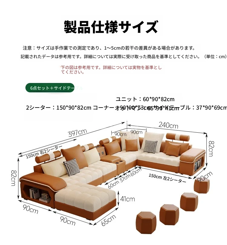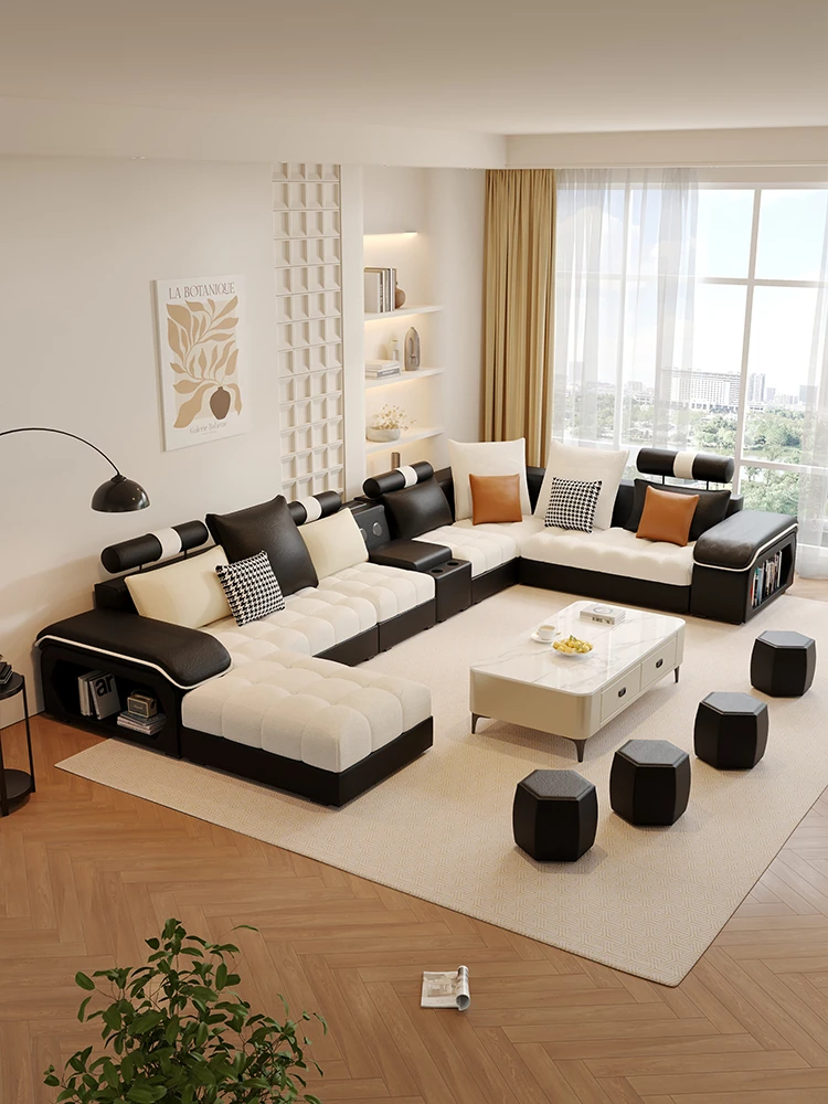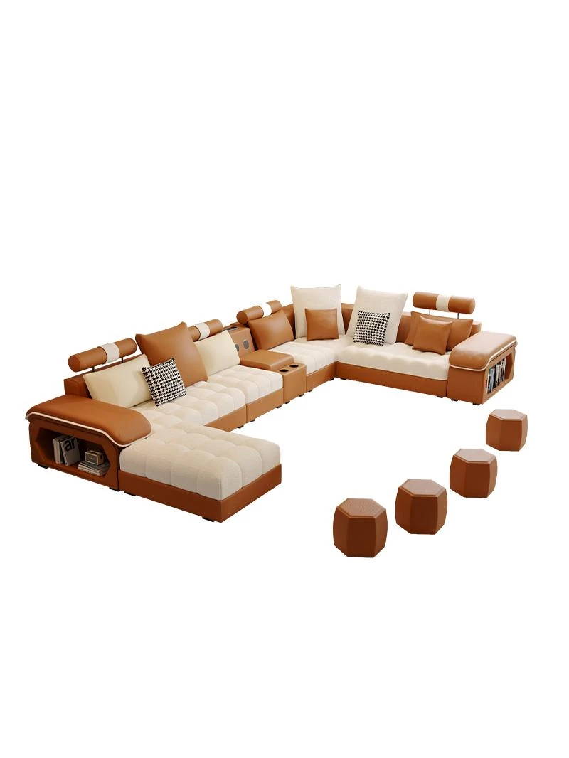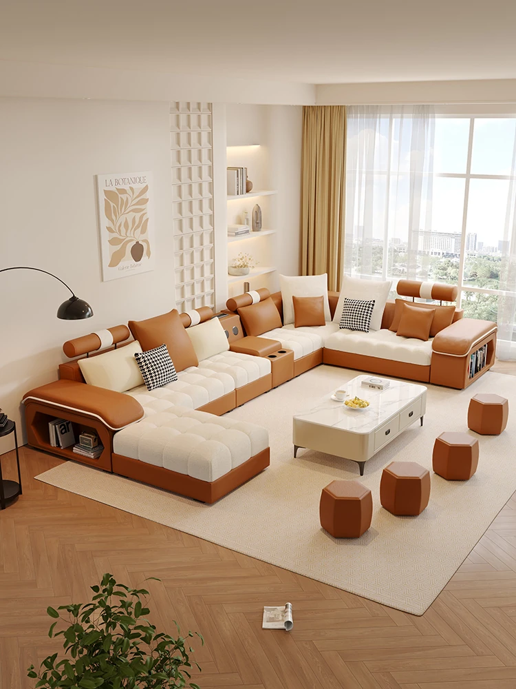 新しいイタリアンミニマリズム猫爪レザーコーナーソファ - 大空間のリビングに最適なシンプルU字型シェーズロングリネン混合ソファセット!モダンでエレガントなデザインが特徴。