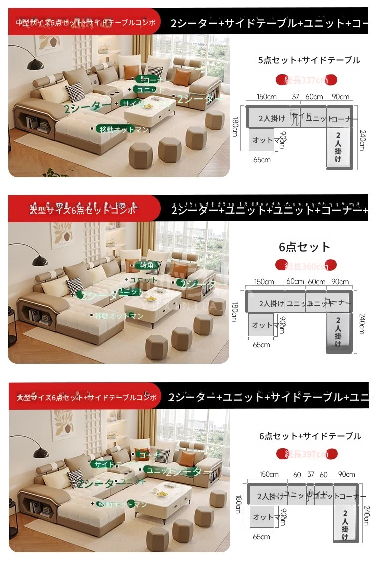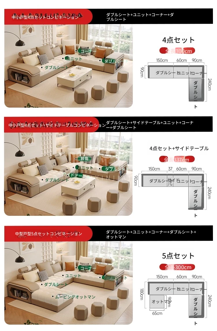 5点セット3メートル+コーヒーテーブル【厳選された高品質の厚手無垢材フレーム】