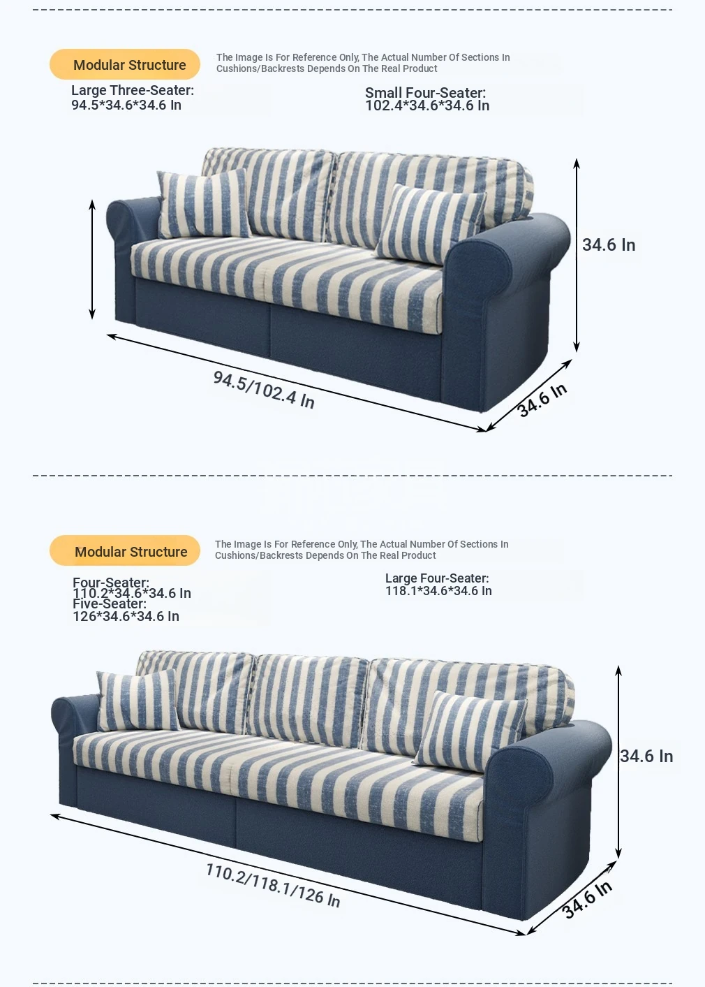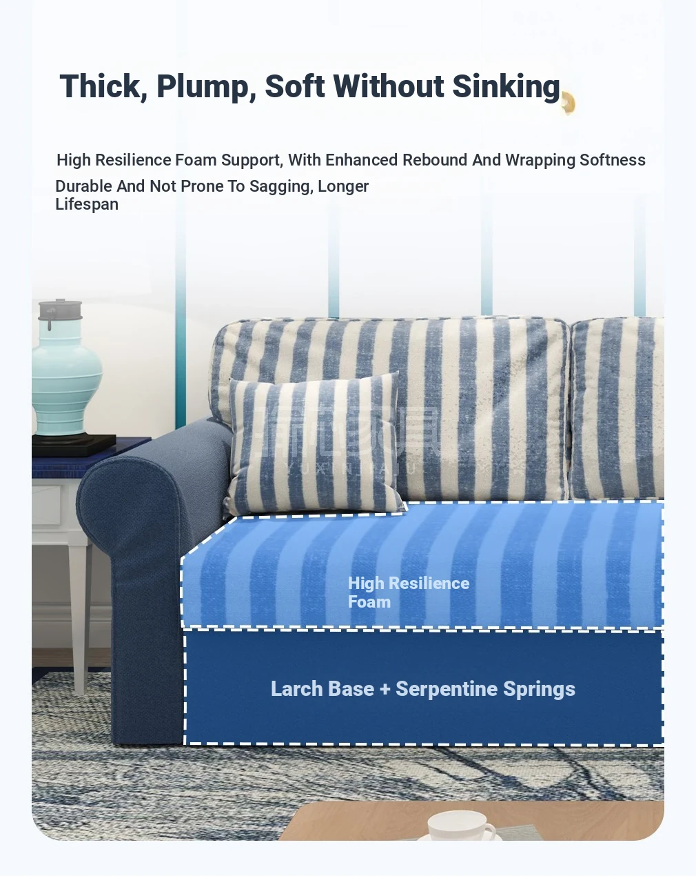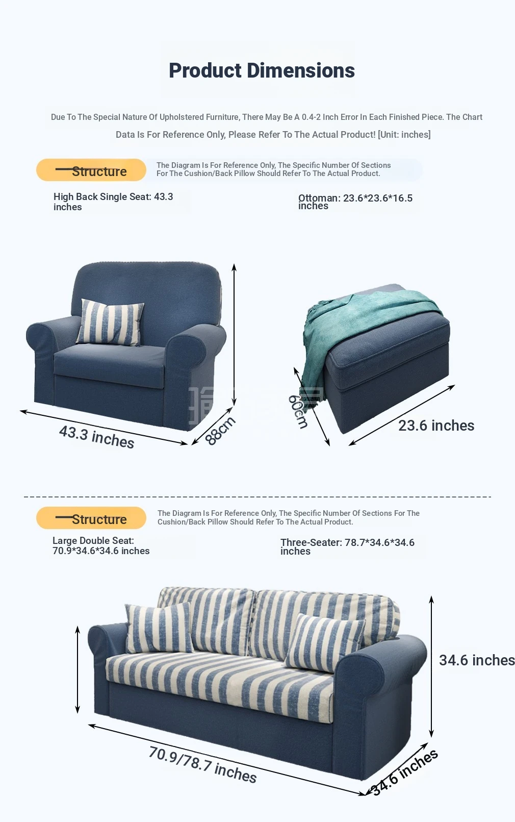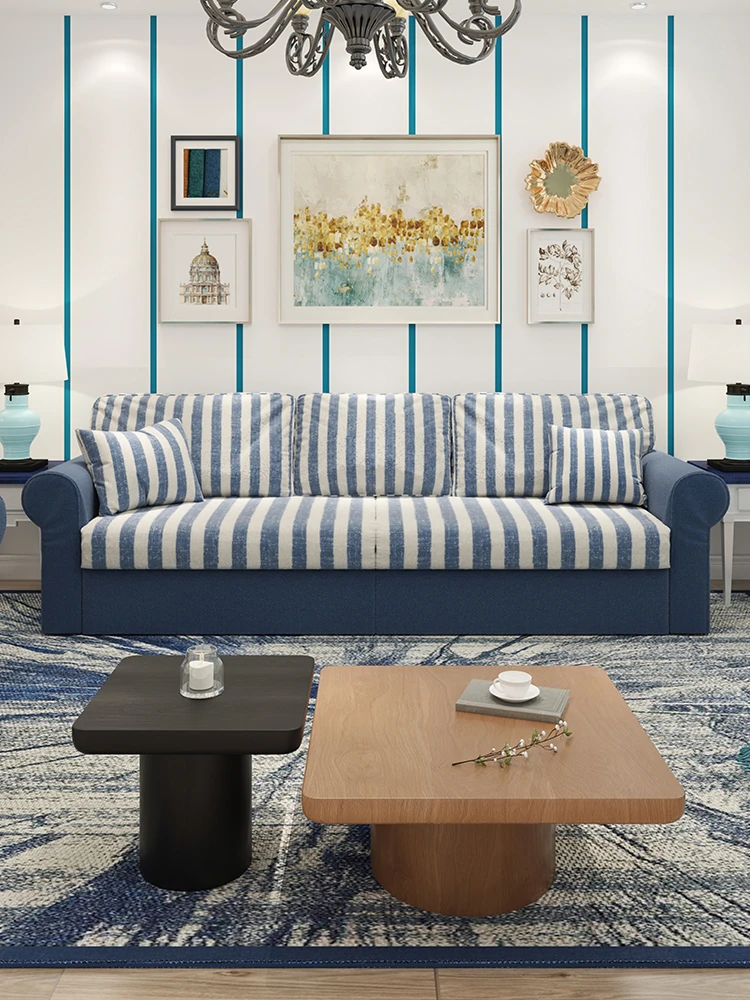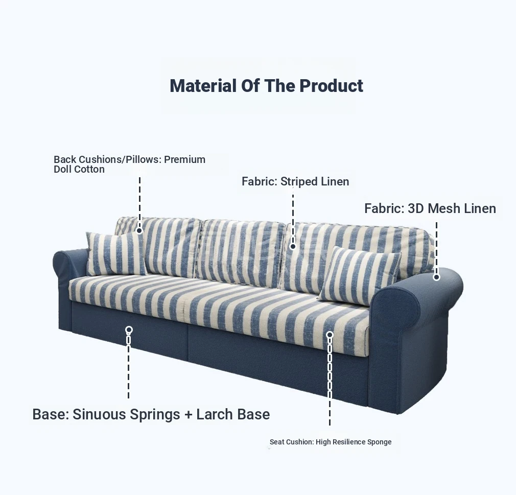 Vintage Striped Cotton Linen Sofa - Modern Mediterranean Style for Nordic and Retro Living Rooms