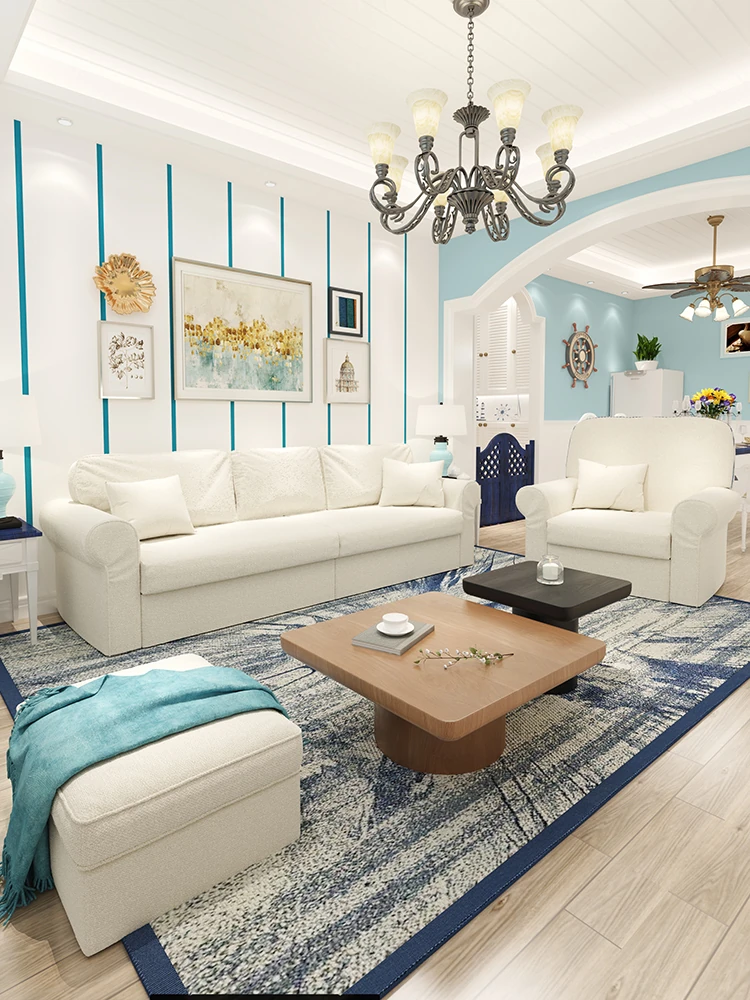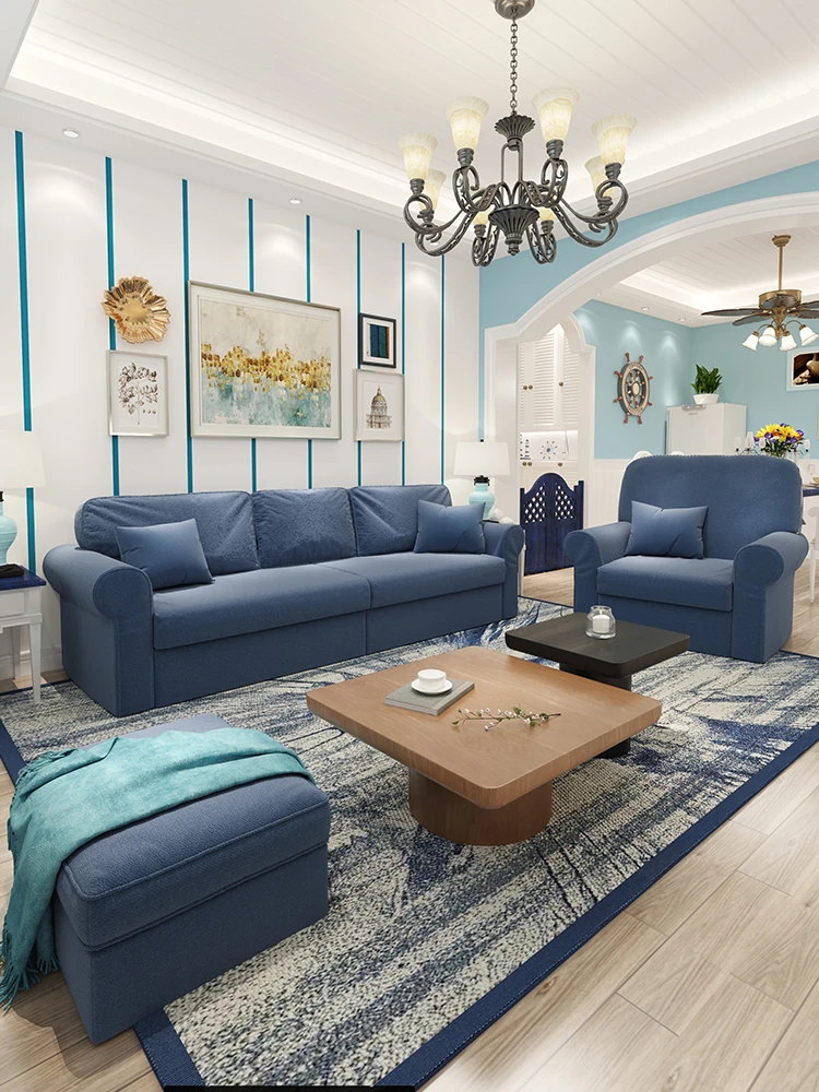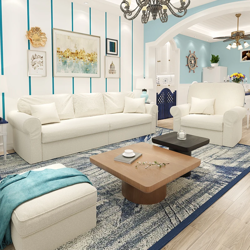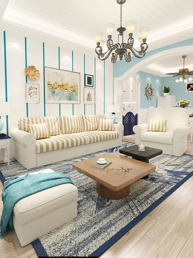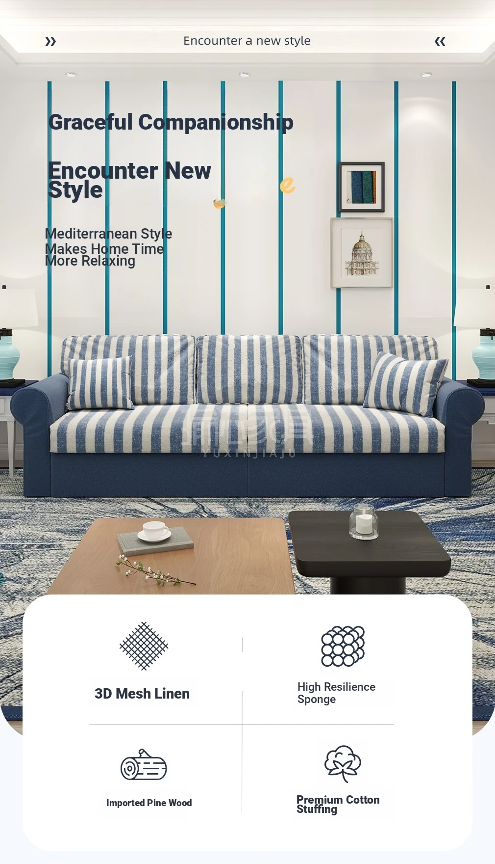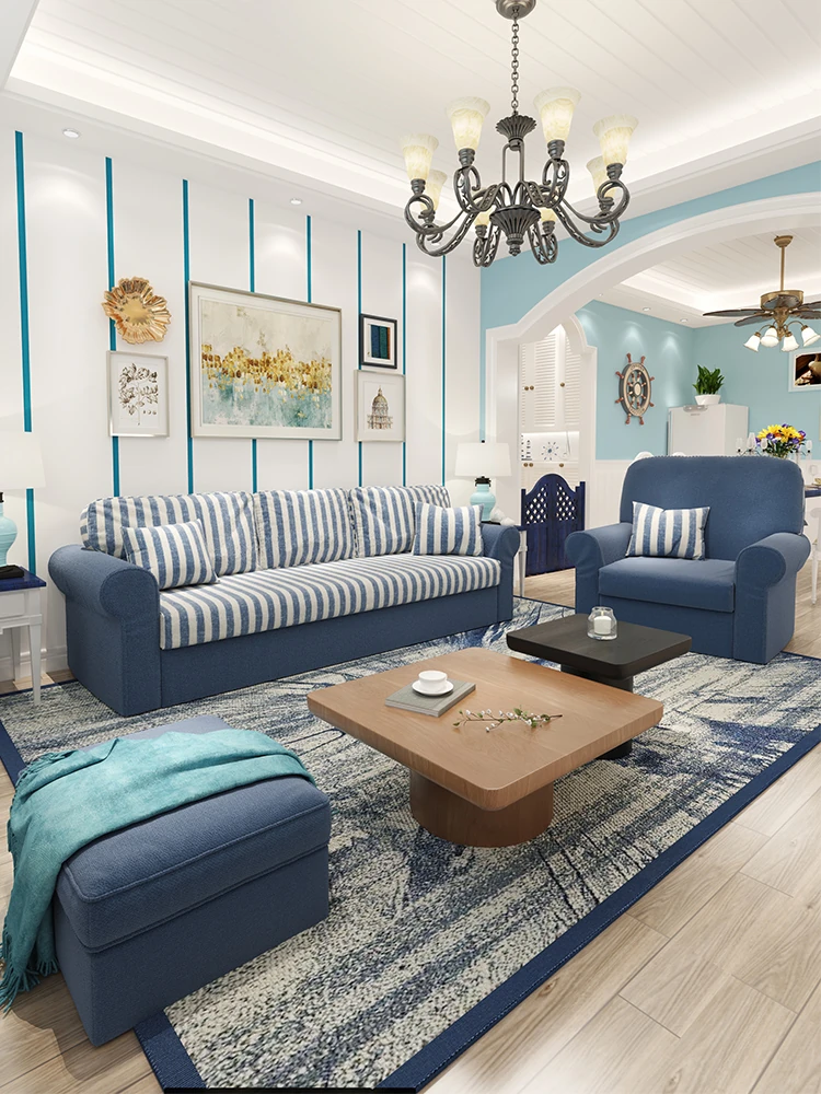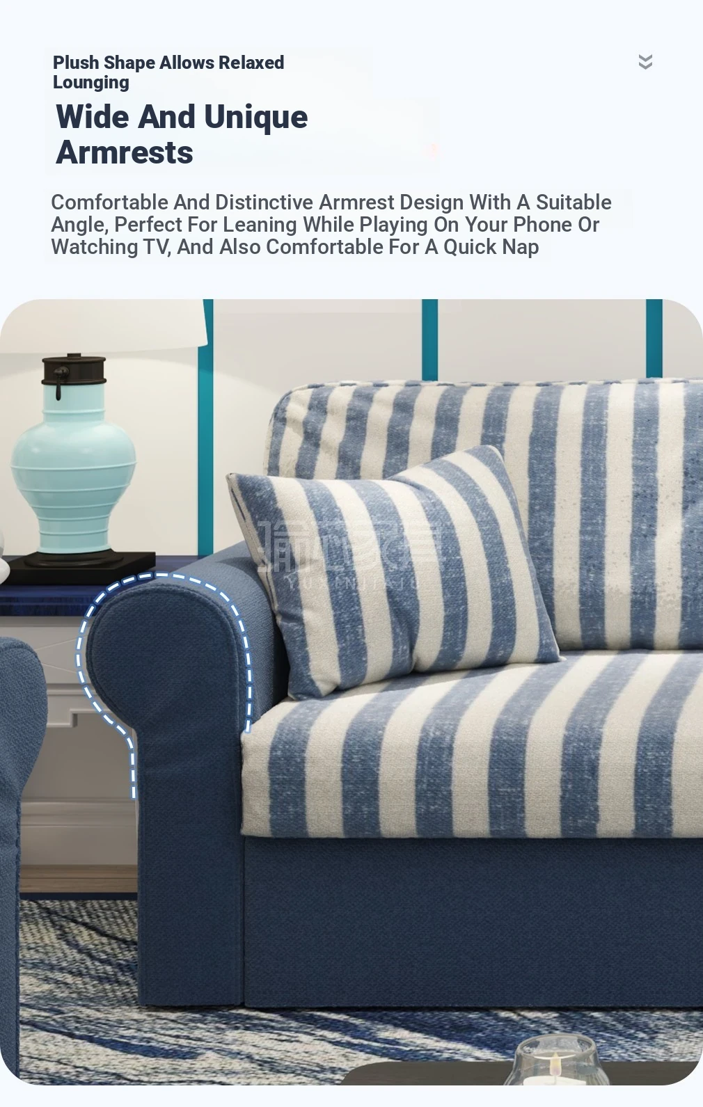 Vintage Striped Cotton Linen Sofa - Modern Mediterranean Style for Nordic and Retro Living Rooms