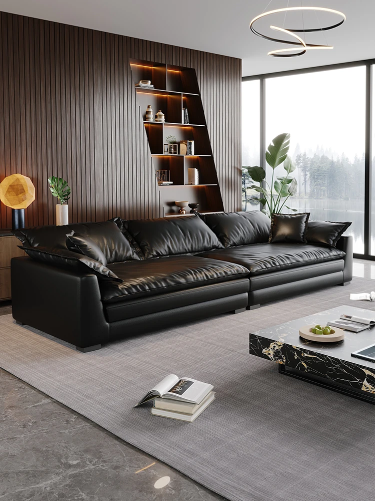 モダン・ミニマリスト・デザインの超ワイドシート・セイルソファ|リビングやアパートに最適なハイバック・ダウンフィル・レザーソファで、快適なひとときをお届けします!