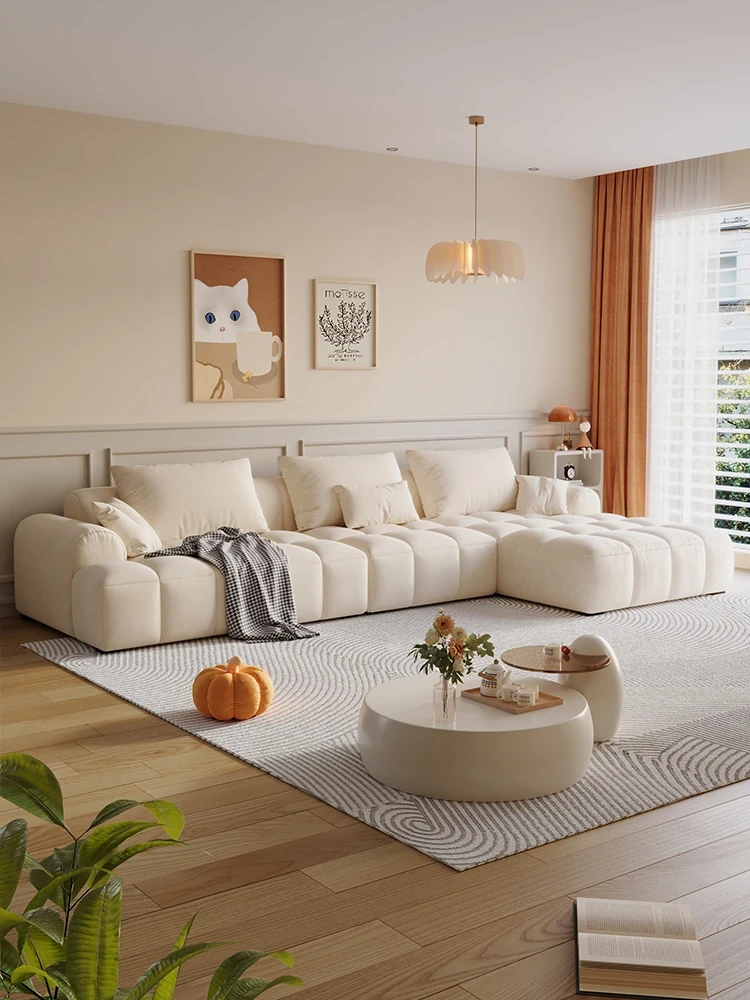 2025年新作 フランス風クリーム泡立ち雲のようなモダンシンプルリビングアパートメント用マシュマロファブリックソファ