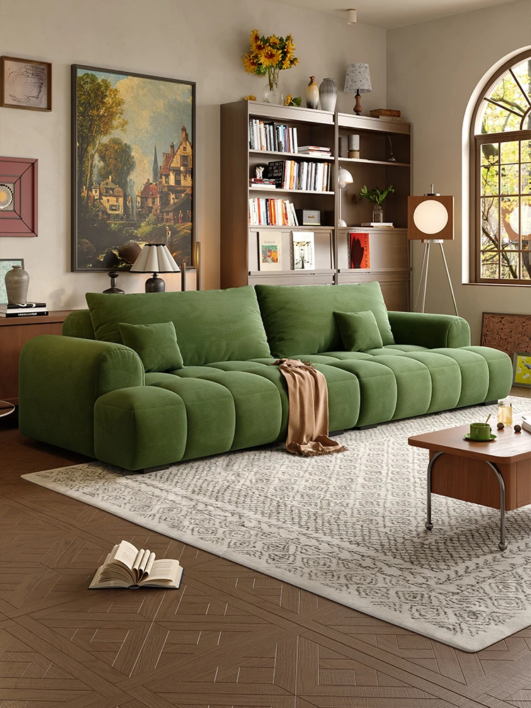 フランス風レトロコーデュロイ・マシュマロ雲ソファ|モダンシンプル・クリーミーなファブリック・プフソファ|リビングにぴったりの快適スタイル!